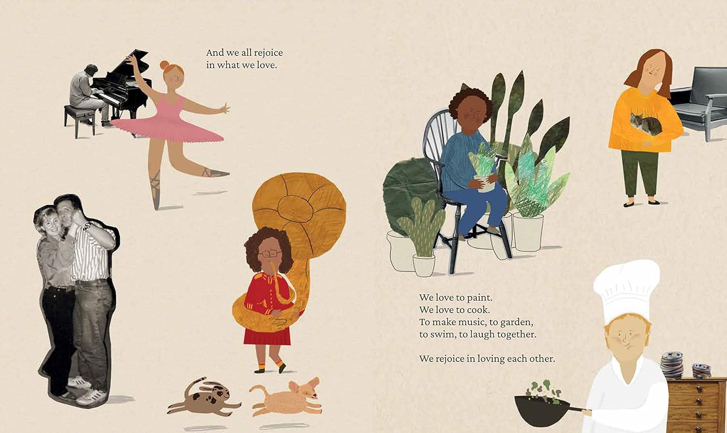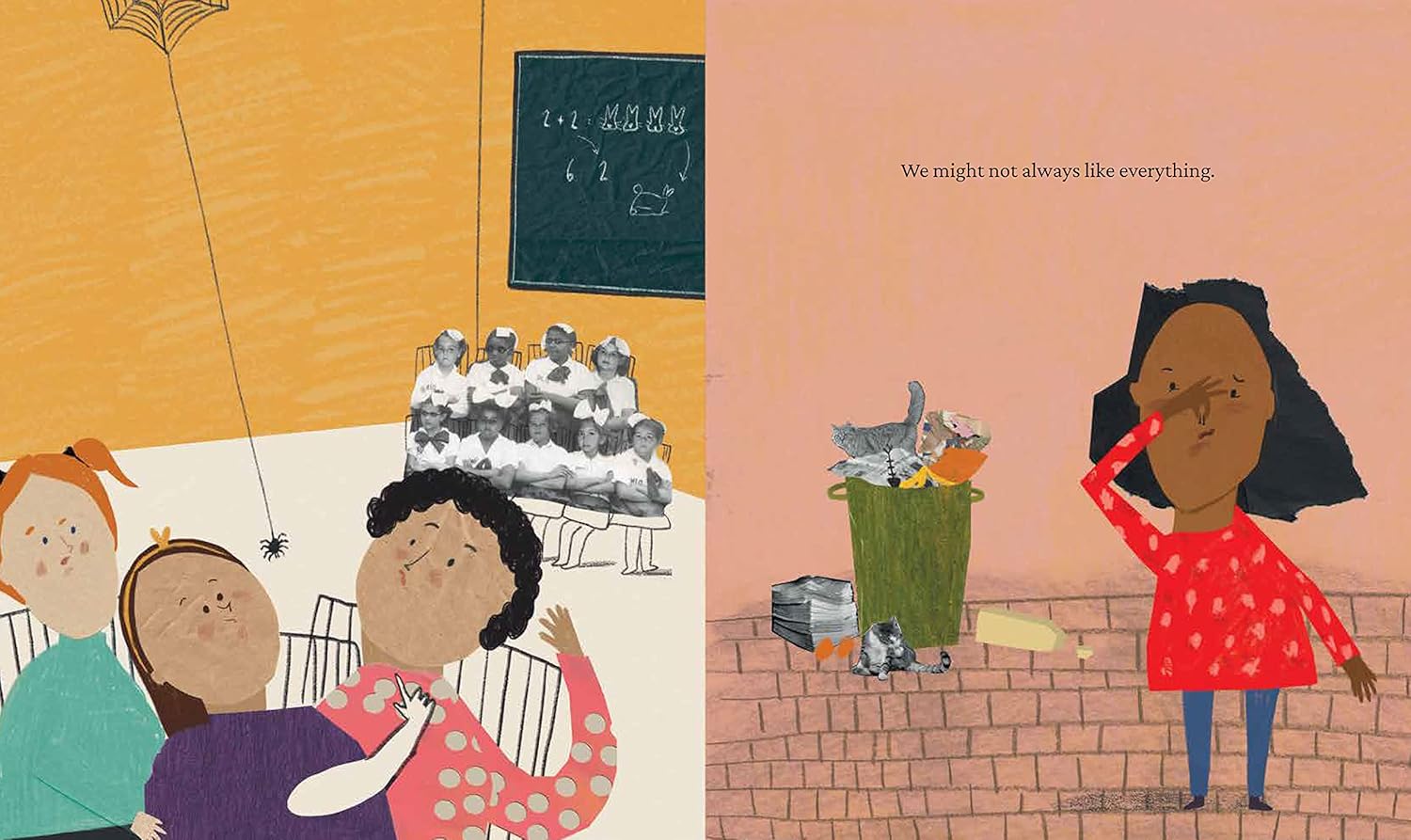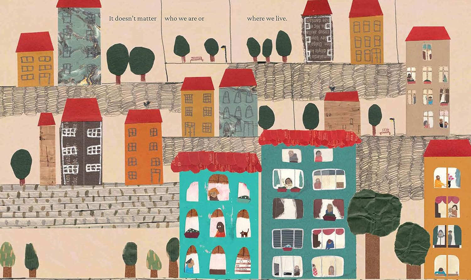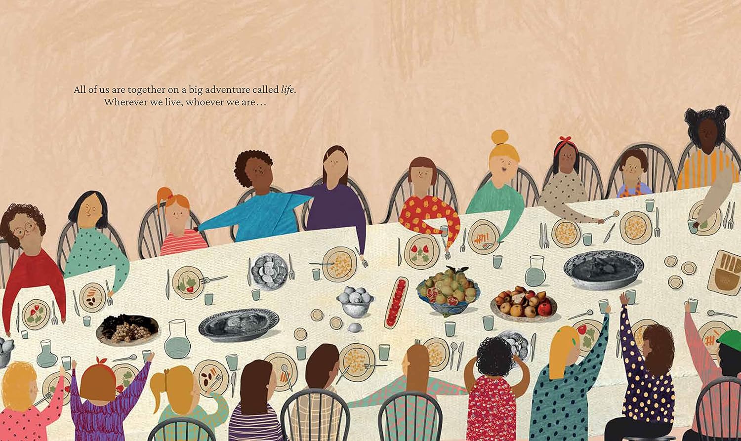 Welcome to this touching and meaningful journey of community and inclusion. Each charmingly illustrated and detailed collage page in All of Us offers a scenic example of the common ground that connects us all through spaces and places (a museum, a classroom, a circus, and more). Readers will encounter people of diverse ages and races, while the accompanying narrated text is designed to teach them about shared emotions (love, hope, fear, curiosity, and more) and experiences (playing music together, sharing meals, etc.