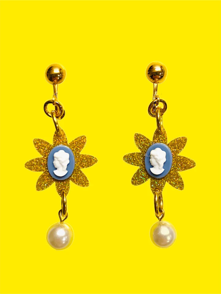 Experience timeless elegance with our CAMEO PEARL LOVE Clip On Earrings! Perfectly crafted with Pearls and Mini Blue Cameo in a glittering Gold Floral setting, these exquisite earrings exude vintage charm and modern sophistication. Wear them to add just the right amount of sparkle to your chic miniature style!
