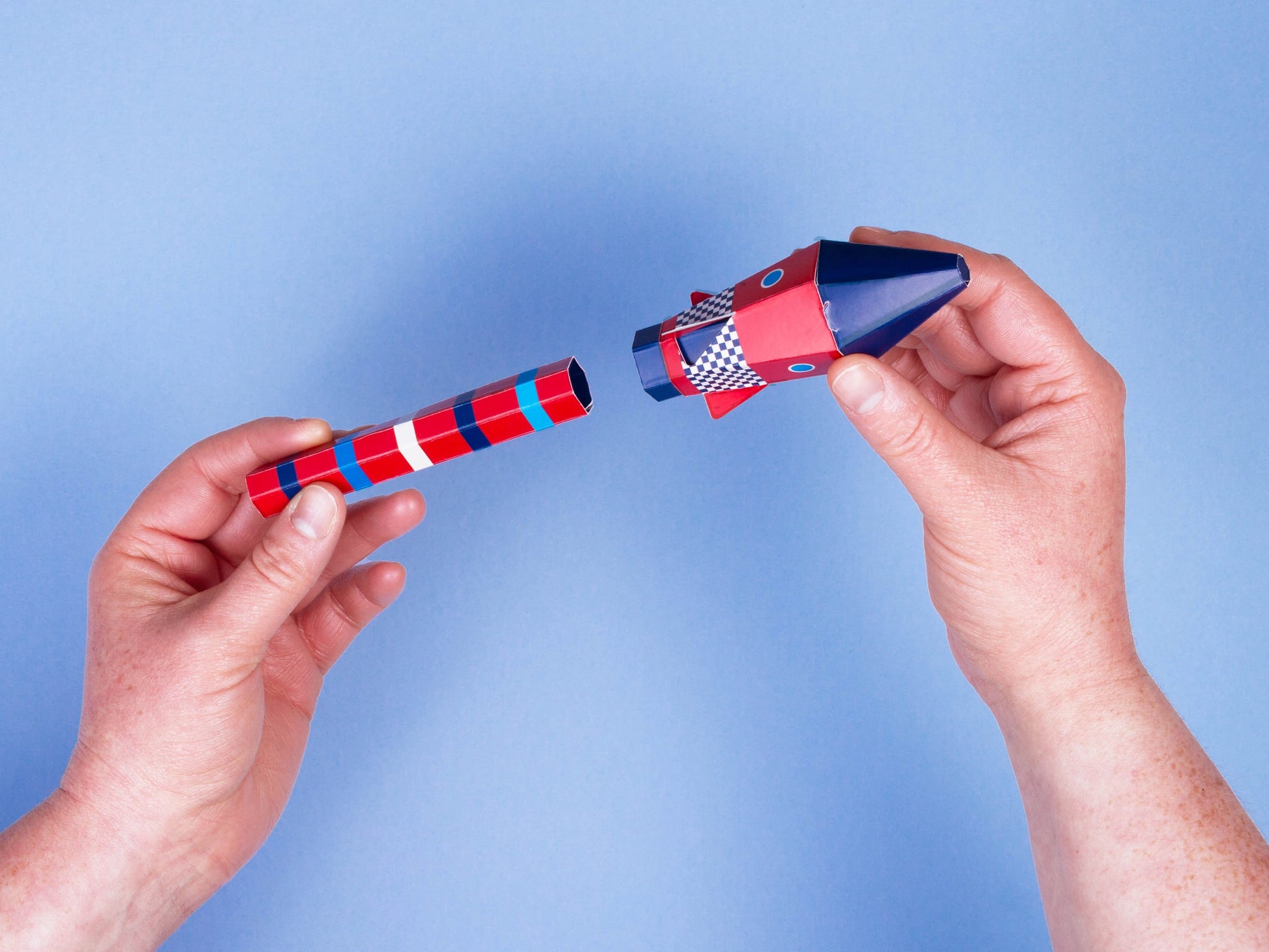 Playful products for every occasion. Build and launch your own reversible blow rocket. Send your rocket into space and win points by returning it to the landing pad.