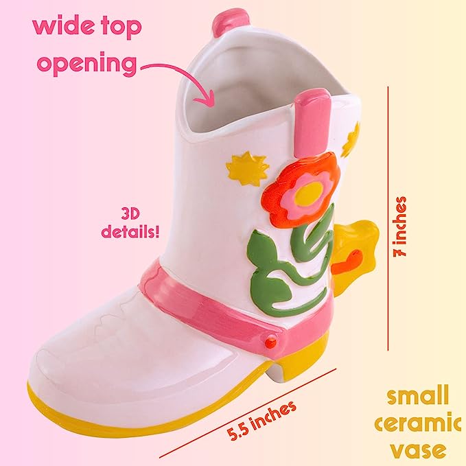 Howdy, partner. This vase is made with hand-painted ceramic, and it's perfect for a rootin' tootin' bouquet or your cutest pens and pencils.