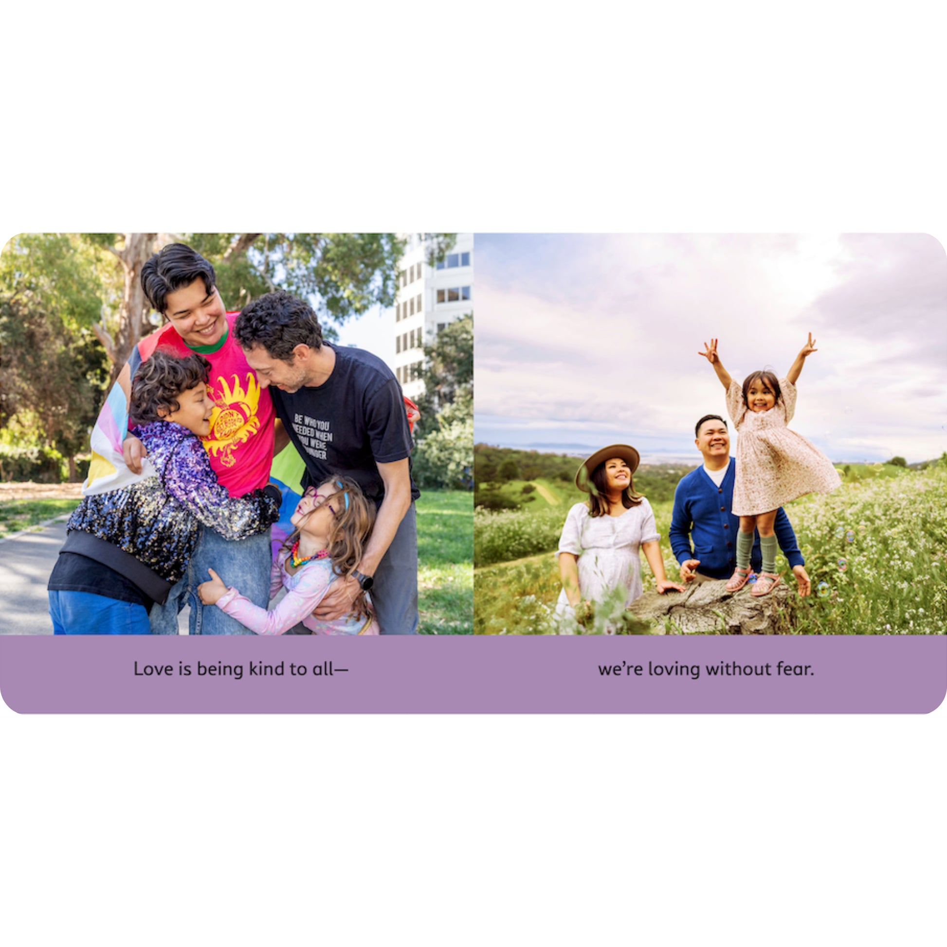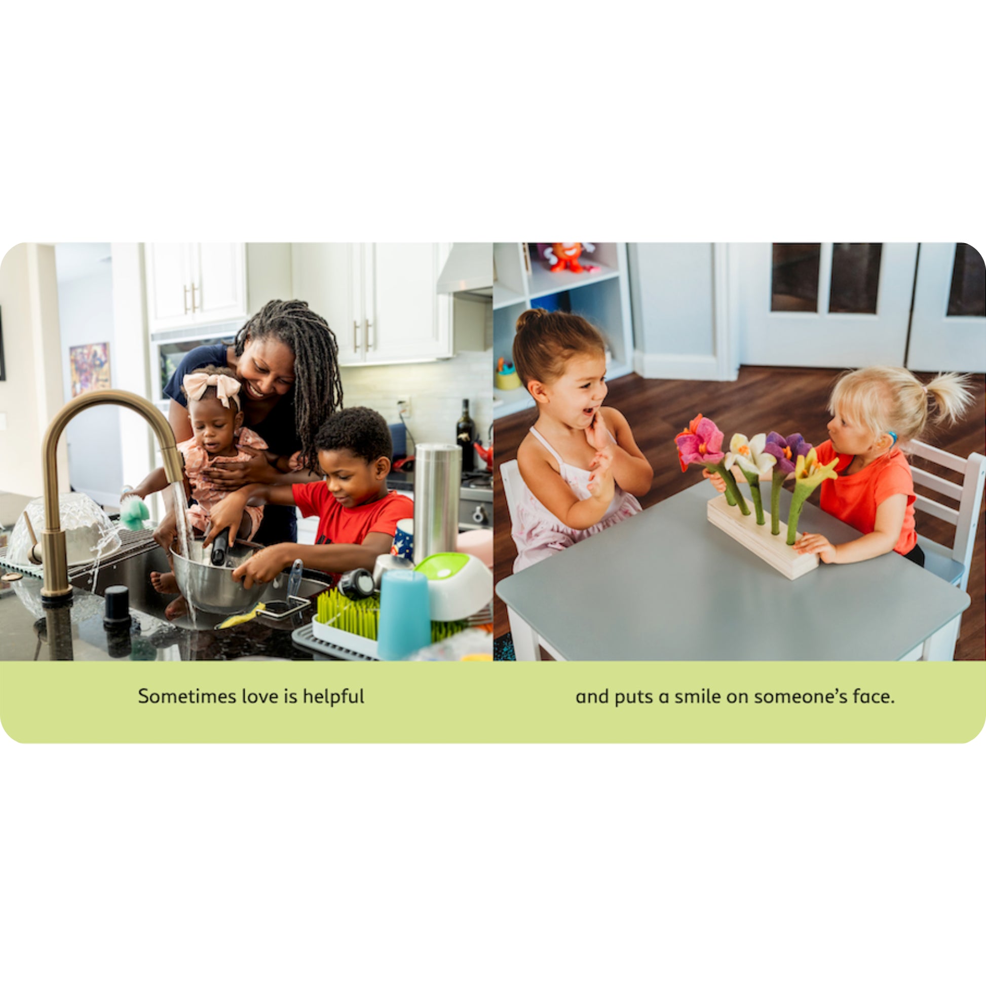 With stellar photography of real families, readers will see love in action as kids, their siblings, and their adoring adult caretakers share, listen, hug, dance, show kindness, demonstrate bravery, and step in to help their families and communities. The book also includes family discussion questions and a note for grownups on how to use this book with young children.
