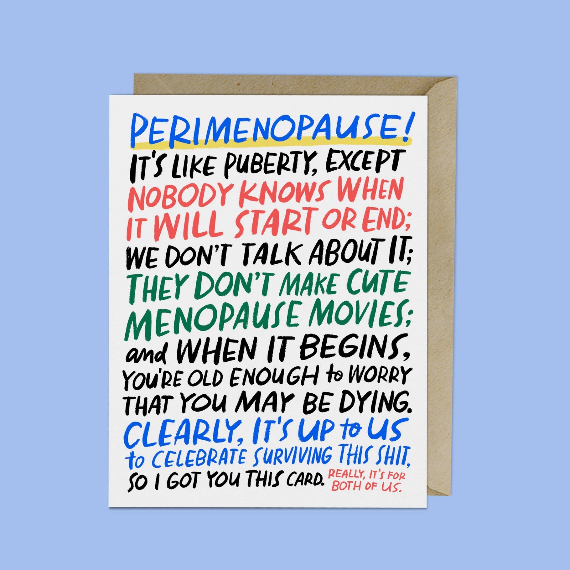 We really could have used a card like this when we started struggling with perimenopause. But, obvi, there wasn’t a card like this. So… we made one!