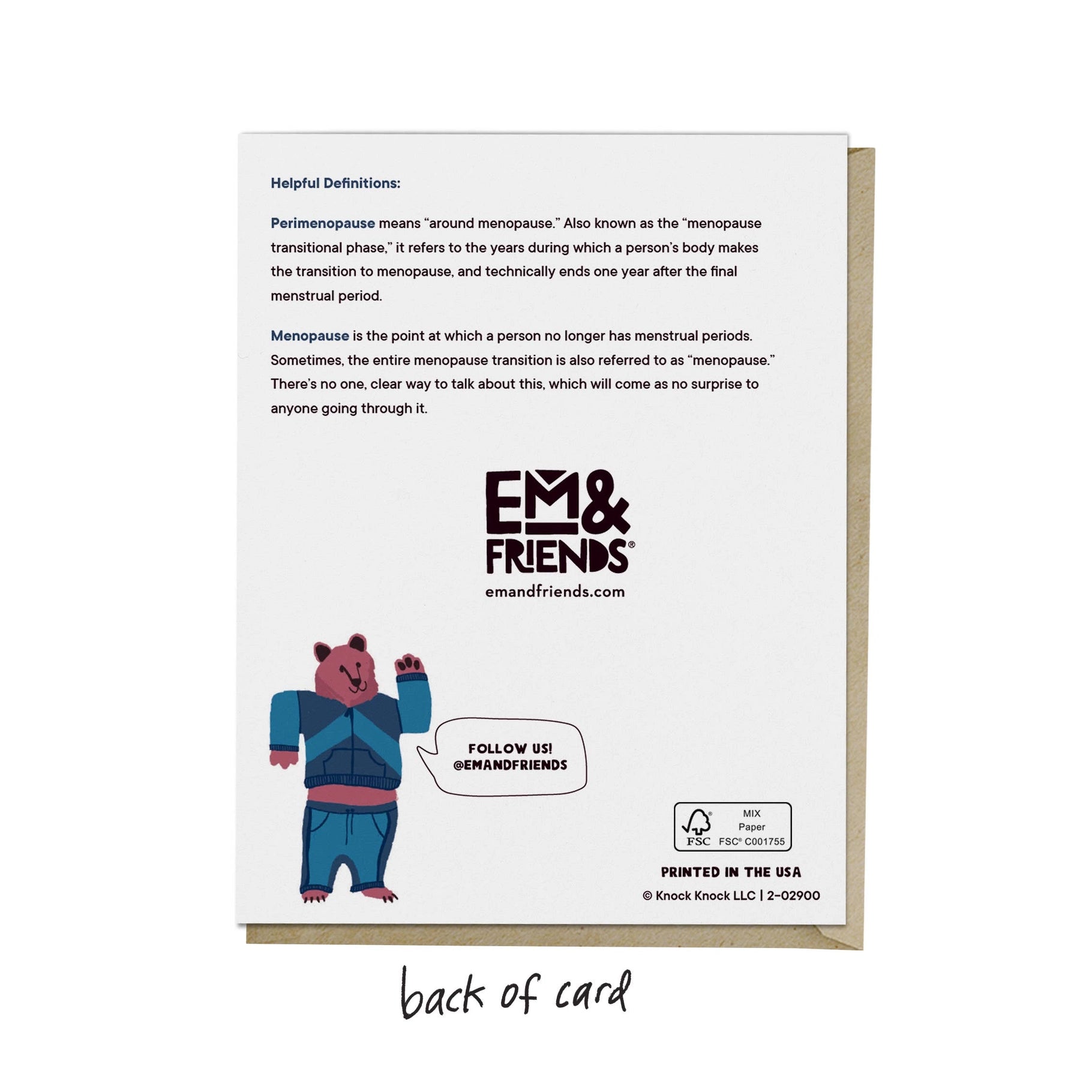 Note: This card is part of a new series dedicated to menopause! We really want to support people going through this transition and normalize conversation around it. With the launch of these cards, we’re proud to join those helping to make this transition less isolating and more empowering.
