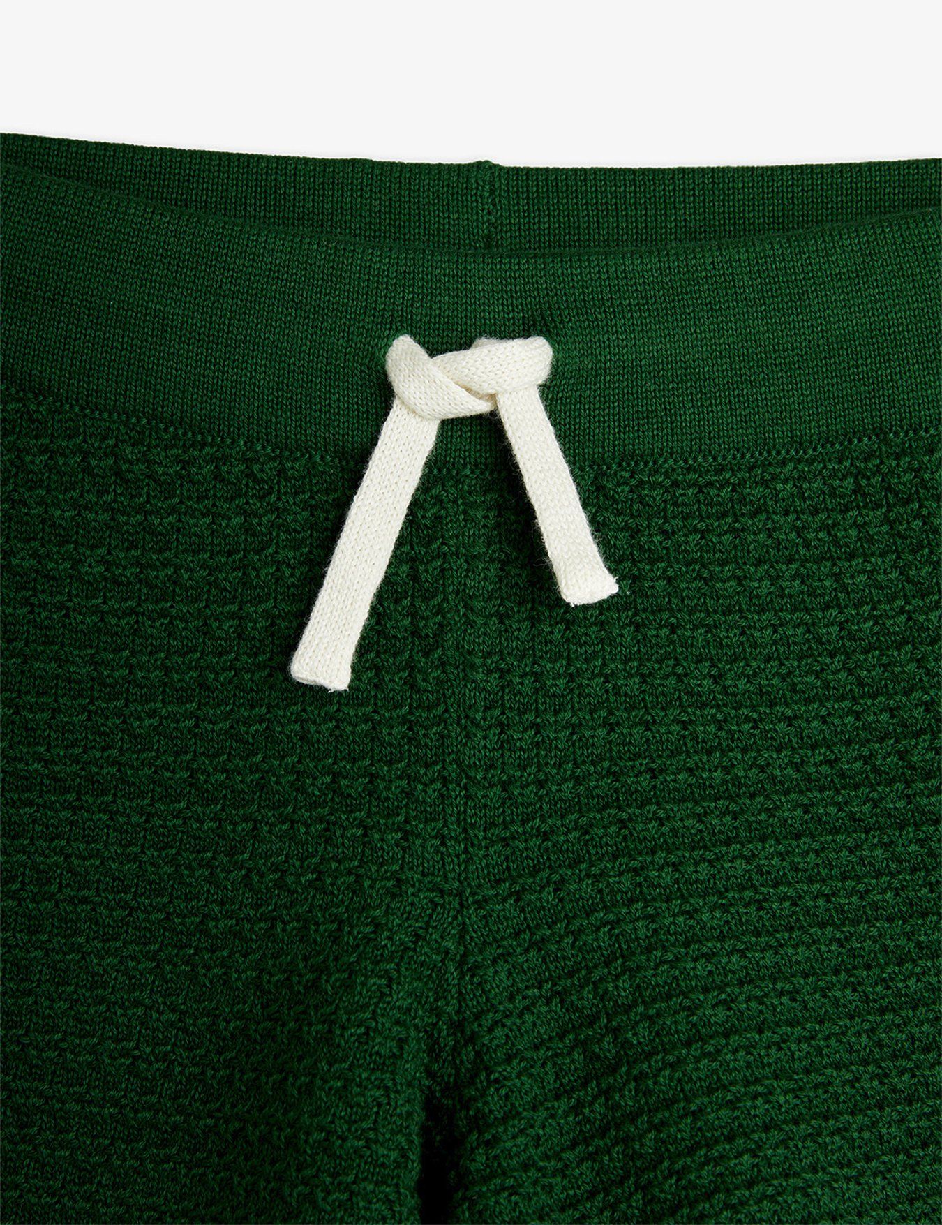 Green knitted shorts made from 100 % GOTS certified organic cotton. Designed with an elastic drawstring waist.