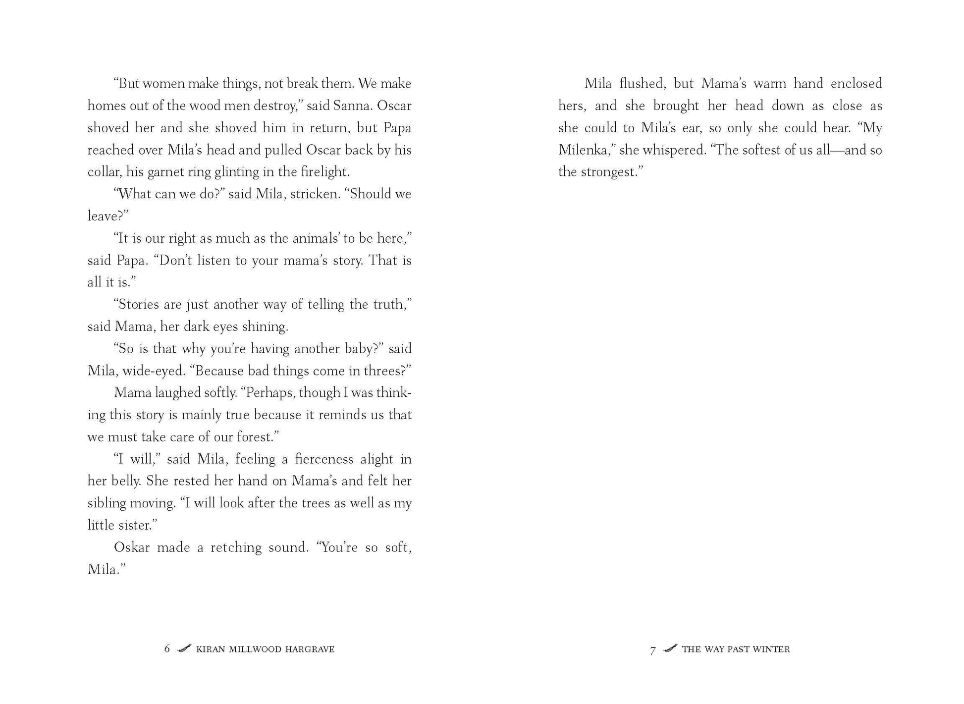 Mila, her sisters, and her brother, Oskar, live in a small forest cabin, surviving in a world gripped by frost and snow.